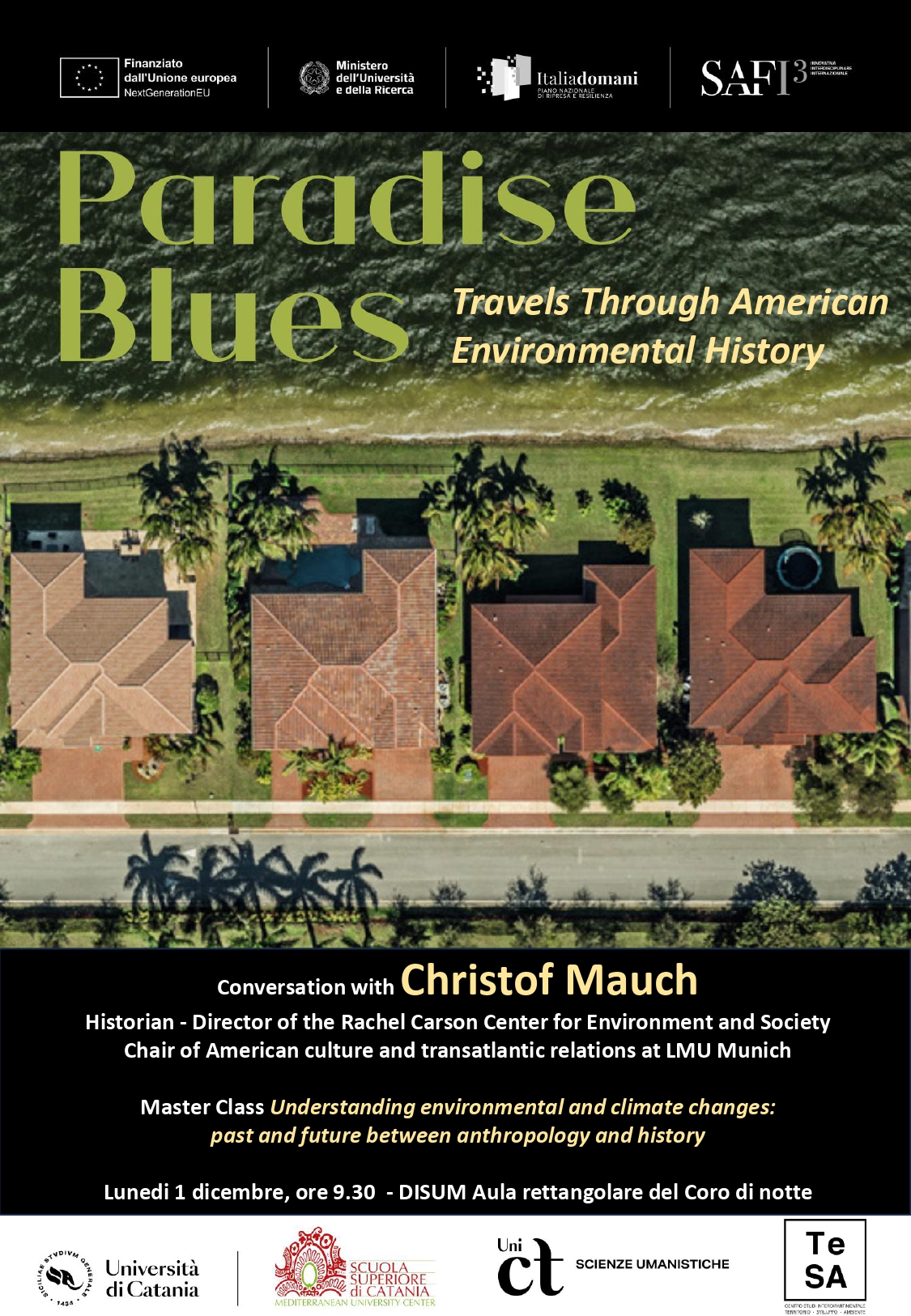 La sessione prevede una Master Class dal titolo "Understanding environmental and climate changes: past and future between anthropology and history" , seguita da un intervento di Christof Mauch, Direttore del Rachel Carson Center for Environment and Society e titolare della cattedra di Cultura americana presso la LMU di Monaco.